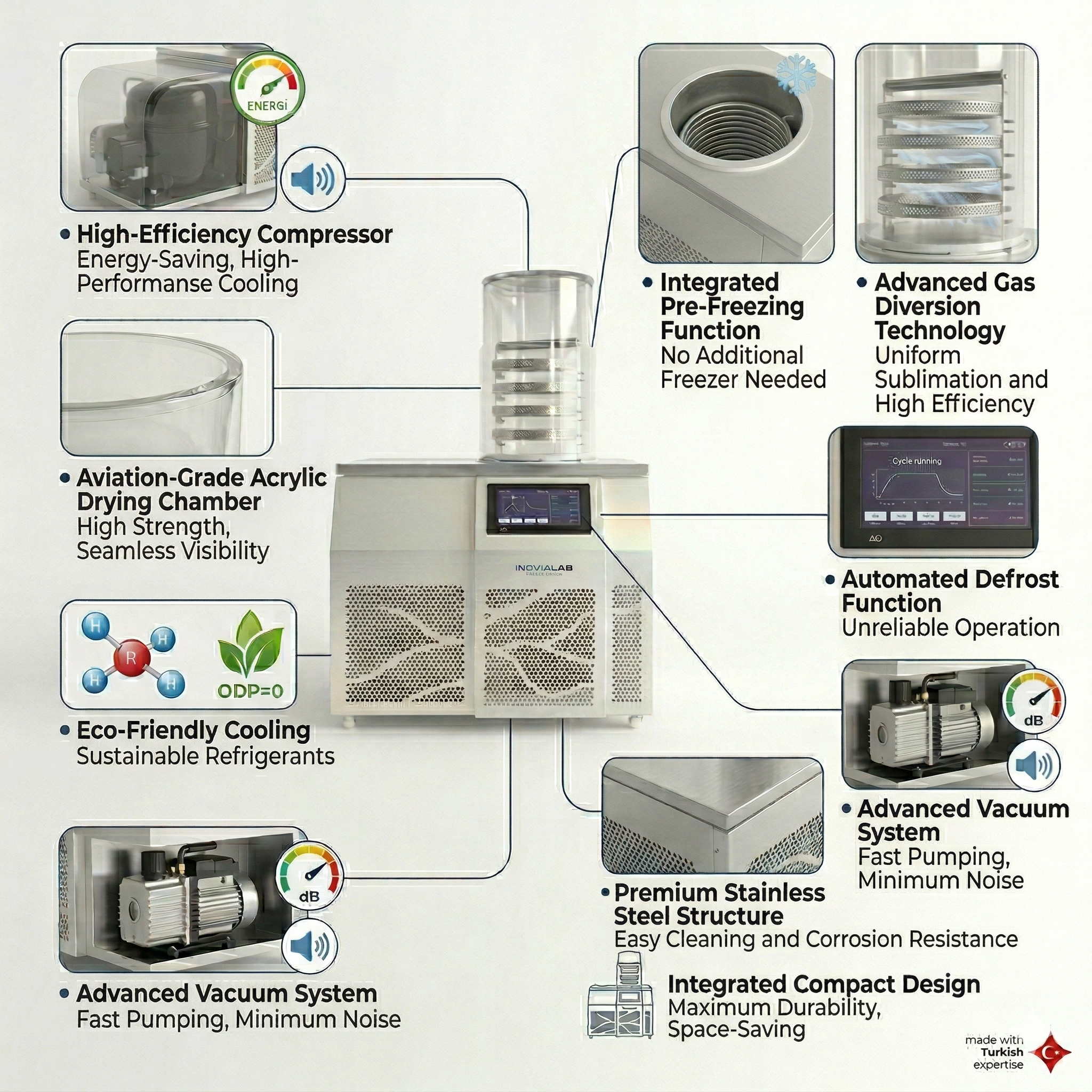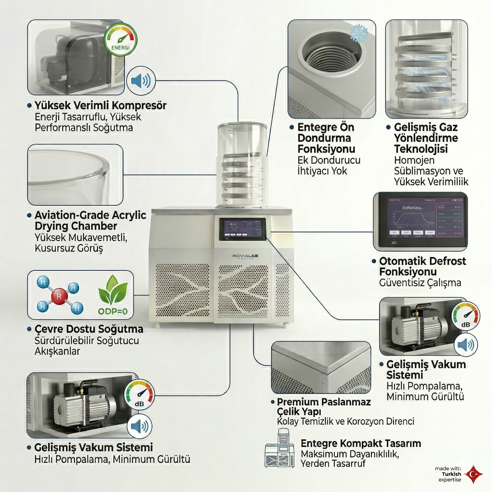| Soğuk Tuzak (Cold Trap) | ≤ -60℃ (-80℃ Opsiyon) | ≤ -60℃ (-80℃ Opsiyon) | ≤ -60℃ (-80℃ Opsiyon) | ≤ -60℃ (-80℃ Opsiyon) |